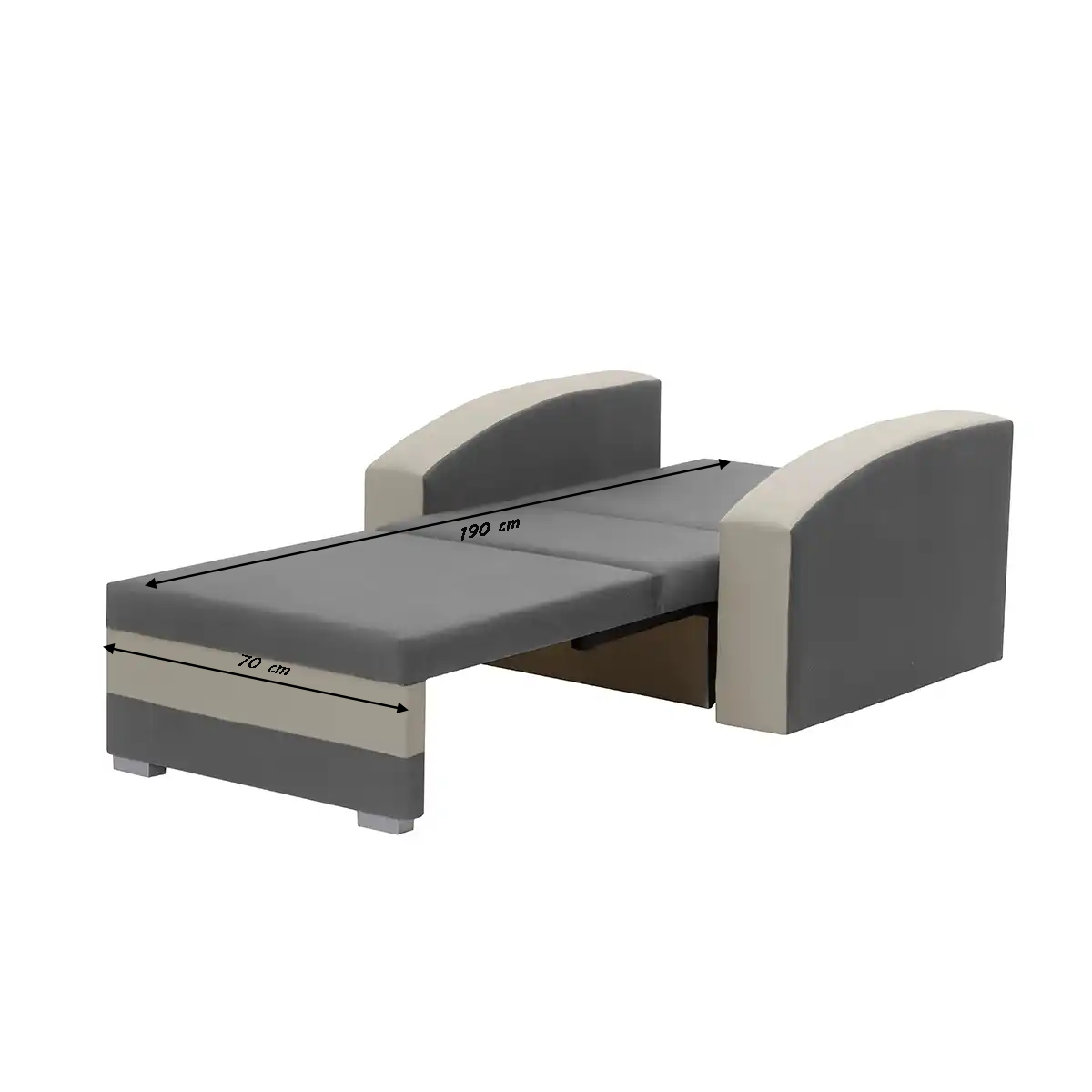 Křeslo JAN je vybaveno praktickou funkcí na spaní, díky které jej rychle přeměníte na pohodlnou postel s plochou na spaní 190 × 70 cm. Rozkládací mechanismus se snadno používá a celá operace trvá jen několik okamžiků. Je to skvělé řešení jak pro každodenní použití, tak i když potřebujete další místo na spaní pro hosty. Křeslo má navíc praktický zásobník na lůžkoviny, který vám umožní uložit polštář, přikrývku nebo peřinu, aniž byste museli hledat další místo ve skříni.