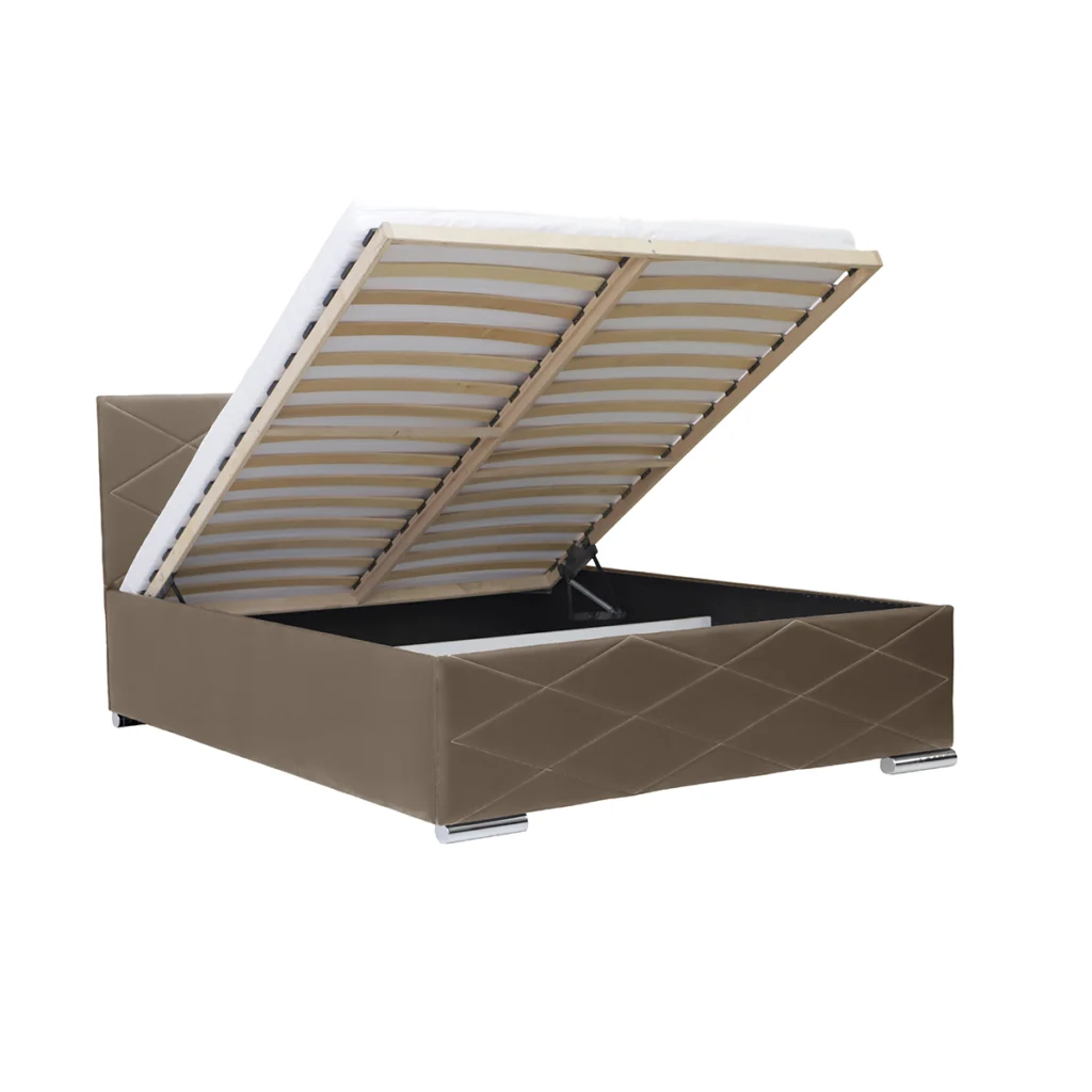 Postel KRE má praktický kontejner na lůžkoviny, který je umístěn pod zvedacím rámem. Je to ideální místo pro uložení dek, přikrývek a dalšího textilu, aniž by zabíralo další místo ve skříních. Otevírací mechanismus funguje lehce a efektivně a umožňuje rychlý přístup k úložnému prostoru.