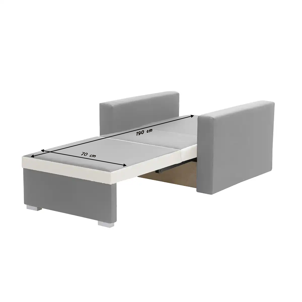 Díky funkci spaní se křeslo o ploše 190 × 70 cm snadno promění v pohodlné místo na spaní a praktickýkontejner na lůžkoviny pomůže udržet v místnosti pořádek.